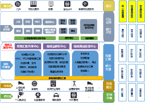 視綜智能防控平臺(tái)以實(shí)現(xiàn)“基礎(chǔ)信息化、警務(wù)實(shí)戰(zhàn)化、執(zhí)法規(guī)范化”為目標(biāo),圍繞“服務(wù)”的理念進(jìn)行總體設(shè)計(jì),以社會(huì)網(wǎng)、視頻專網(wǎng)和公安內(nèi)網(wǎng)三張網(wǎng)為基礎(chǔ),進(jìn)一步拓展圖像信息在公安業(yè)務(wù)中的應(yīng)用廣度和深度,提升公安機(jī)關(guān)核心戰(zhàn)斗力,為指揮調(diào)度、預(yù)防打擊違法犯罪、維護(hù)社會(huì)穩(wěn)定提供有力的信息支撐,基于視圖大數(shù)據(jù)分析技術(shù)創(chuàng)新情指巡一體化工作機(jī)制。
